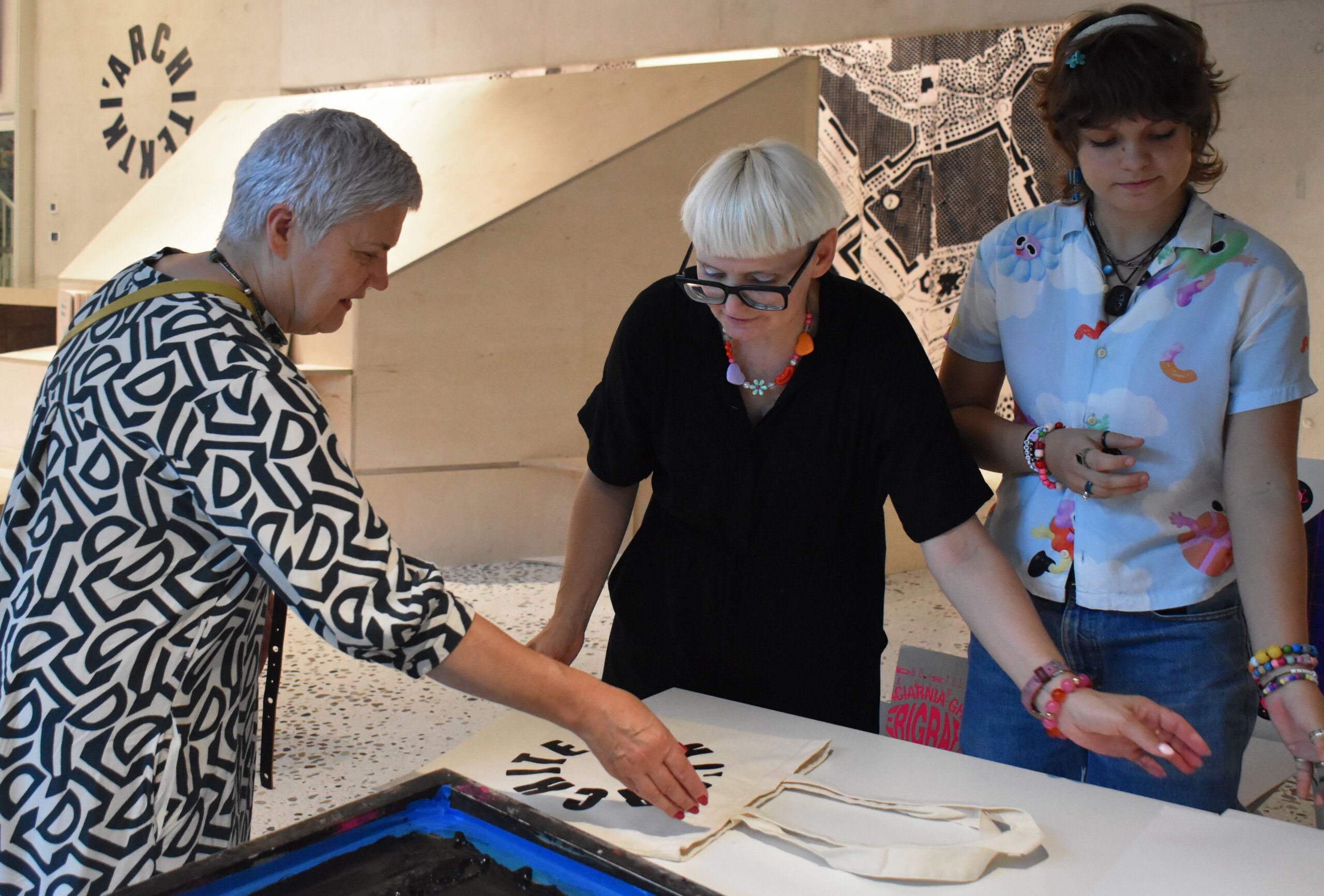 Podczas warsztatów przeniesiemy logo wystawy Architektki, na torby i koszulki.