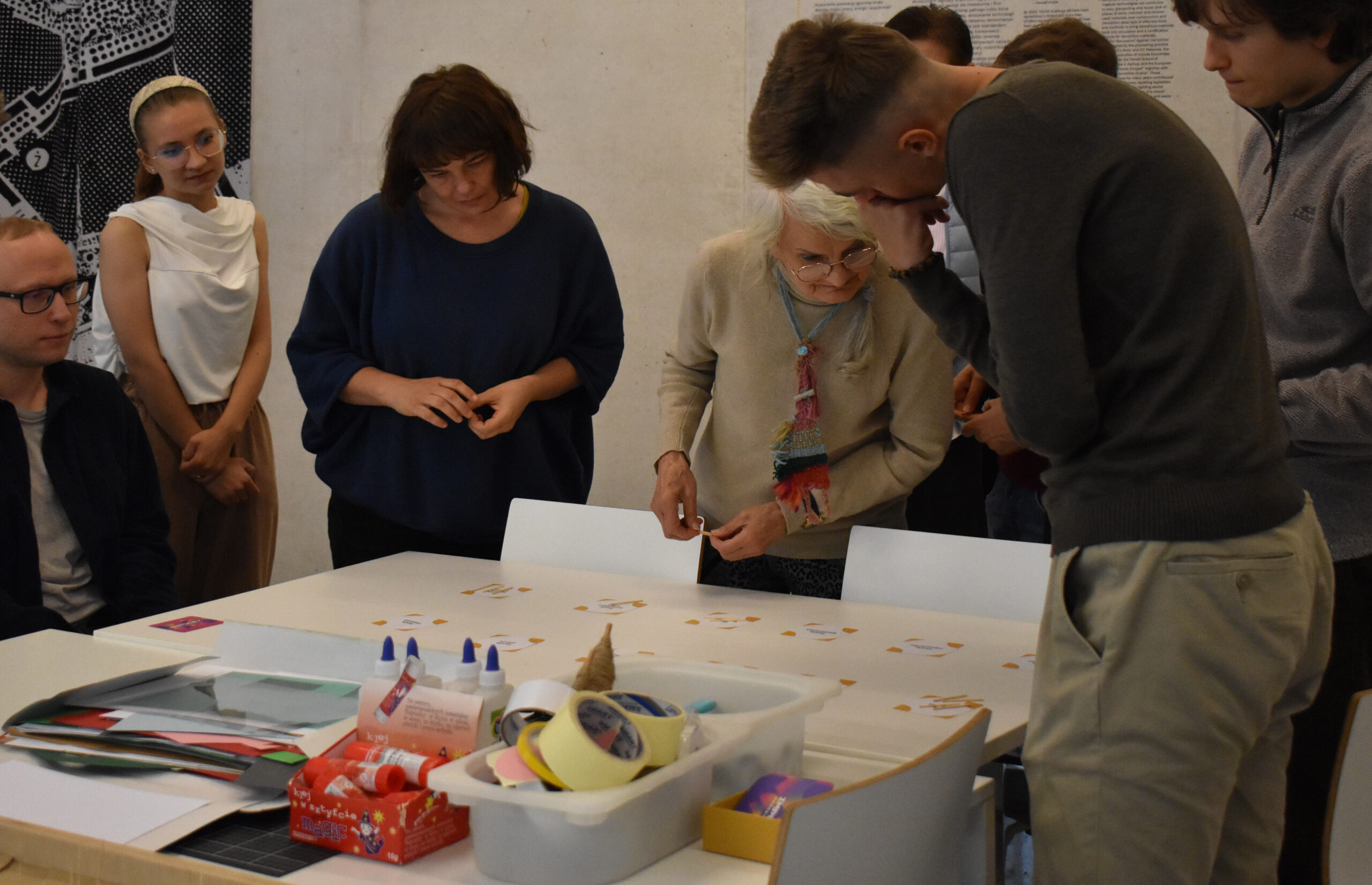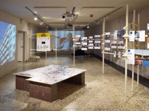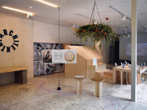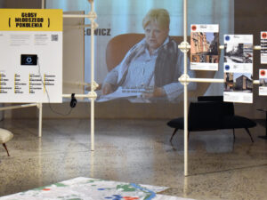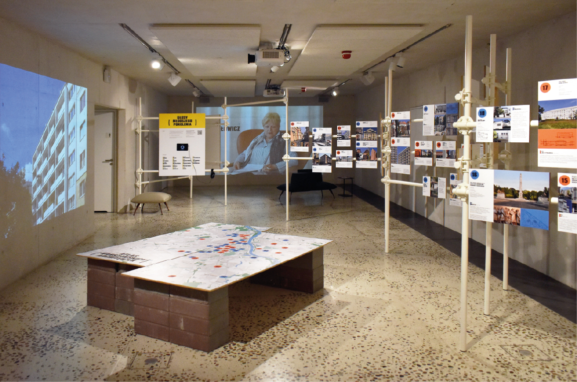The exhibition is about sharing knowledge, experience, and caring for space and the environment. This idea also guided the design and production of the exhibition, which was created almost entirely from recycled materials.