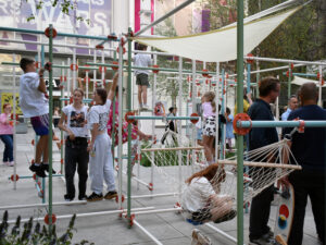 We wonder if the centre of Warsaw can be friendly to the youngest and their caretakers. The square in front of the Zodiak Pavilion has the potential to become a place of rest and play. Children are users of the city, too. Therefore, the next step in the development of the centre of Warsaw should be to create spaces that allow the entire family to spend time together. Just as Nina Jankowska envisioned it.