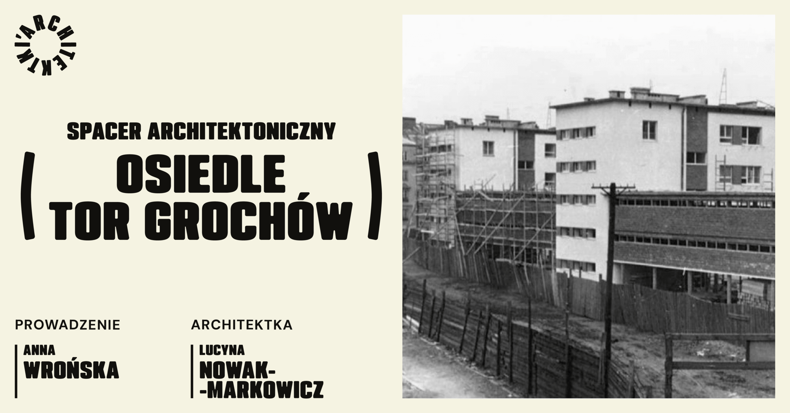 It will be a walk around the TOR Grochów housing estate, which will also be an opportunity to hear about the life of its designer, Lucyna Nowak-Markowicz. The housing estate was designed under the supervision of Roman Piotrowski in collaboration with Mirosław Szabuniewicz and Natalia Hiszpańska (?). It is her largest and most important project. Was it her last project? You will find out on October 4, as the tour guide will share her latest discoveries about Nowak-Markowicz’s later life!