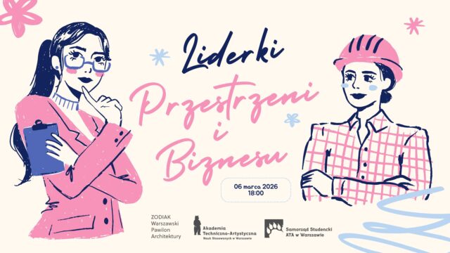 Z okazji Międzynarodowego Dnia Praw Kobiet Samorząd Studencki ATA w Warszawie ma przyjemność zaprosić na wyjątkowe spotkanie „Liderki Przestrzeni i Biznesu”, które odbędzie się 6 marca o godz. 18:00 w ZODIAKU Warszawskim Pawilonie Architektury.