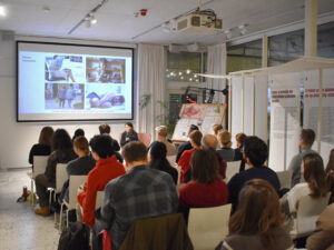Wydarzenie odbędzie się na parterze budynku, do którego wejdziesz z poziomu chodnika. Drzwi wejściowe otwierają się automatycznie na zewnątrz. Jeśli poruszasz się na wózku inwalidzkim lub z wózkiem dziecięcym budynek jest dla Ciebie w pełni dostępny. W środku jest winda, którą dojedziesz na wszystkie poziomy budynku. Na parterze blisko miejsca spotkania znajdziesz toalety, w tym łazienkę z przewijakiem dla dzieci dostosowaną do potrzeb osób z trudnościami w poruszaniu się.